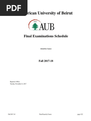 Https Www Aub Edu Lb Registrar Documents Pdfdoc Finalexam Bycourse Pdf