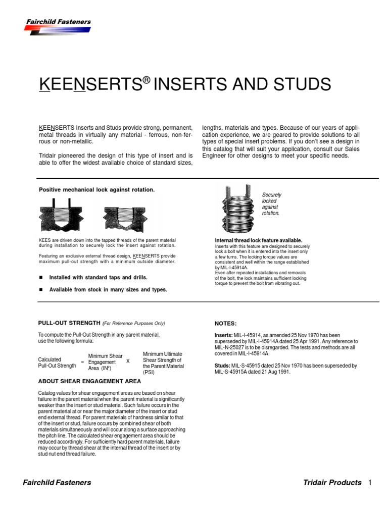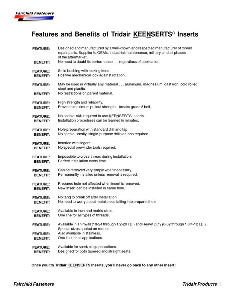 Features And Benefits Of Tridair Keenserts Inserts Pdf Free Download