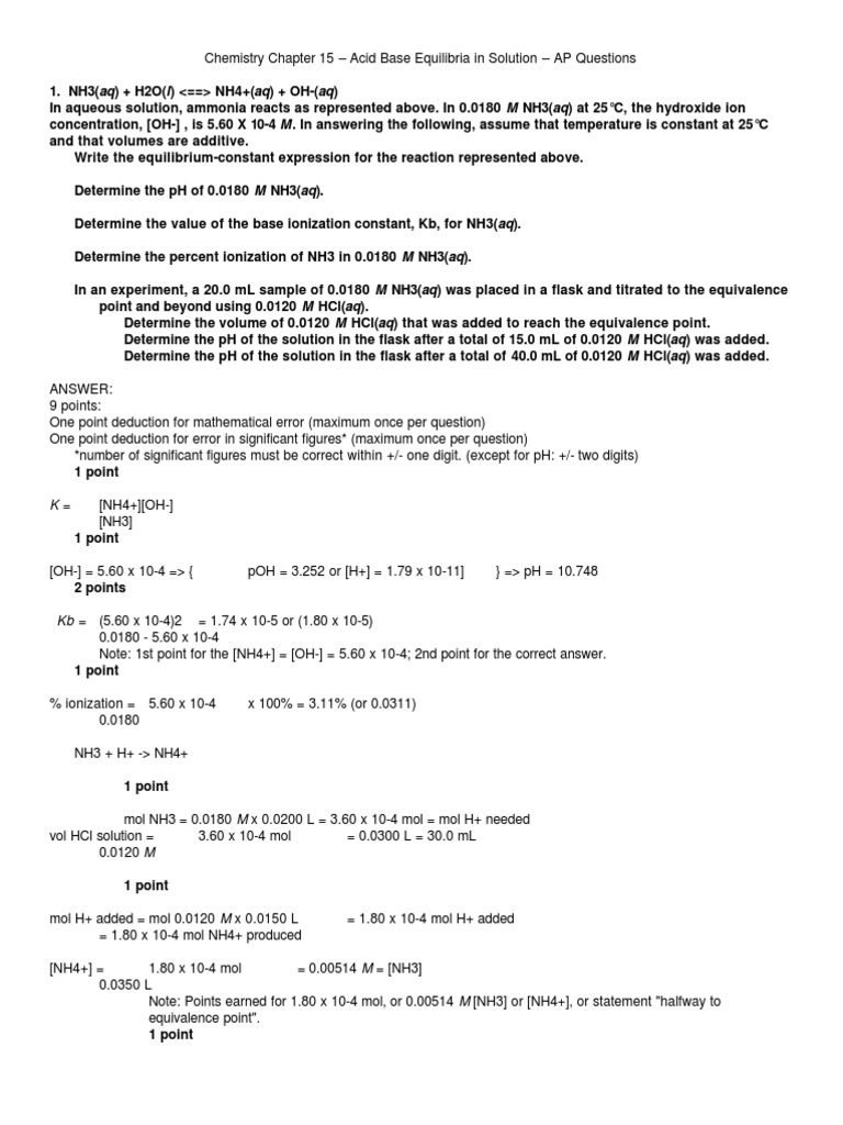 Example Titration Of 100 0 Ml Of 0 05 M Nh3 With 0 10 M Hci