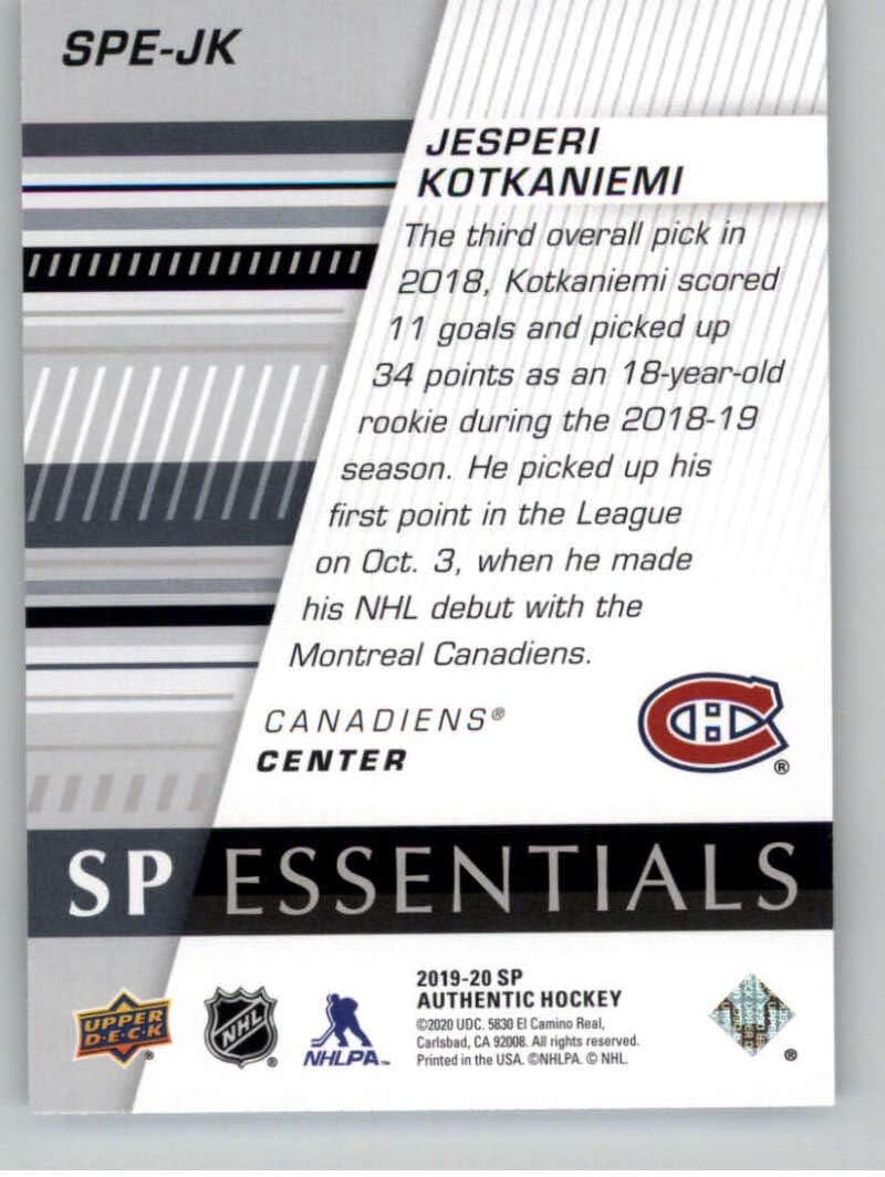 Amazon Com 2019 20 Sp Authentic Sp Essentials Hockey Spe Jk Jesperi Kotkaniemi Montreal Canadiens Official Nhl Trading Card From The Upper Deck Company
