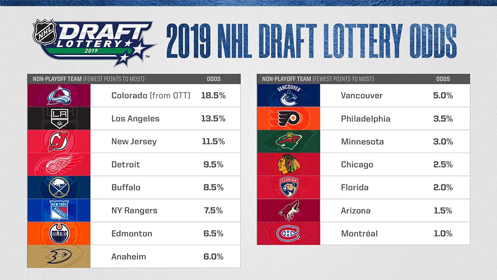 Nhl Draft Lottery 2019 Best Odds To Win No 1 Pick Lose For