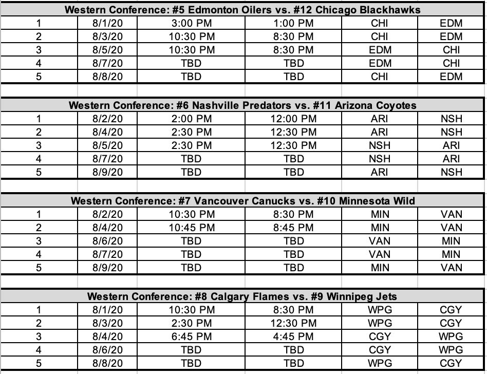Nhl Announces Times And Dates Of Exhibition Games And Qualifying Round