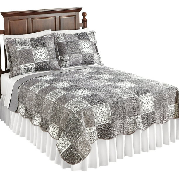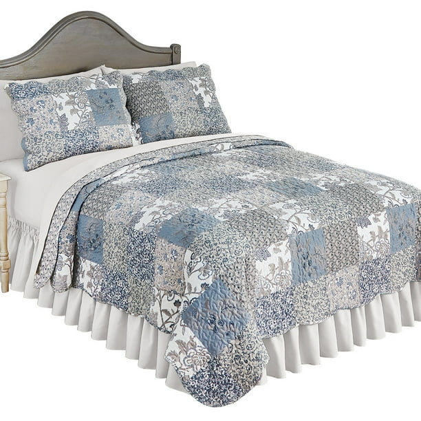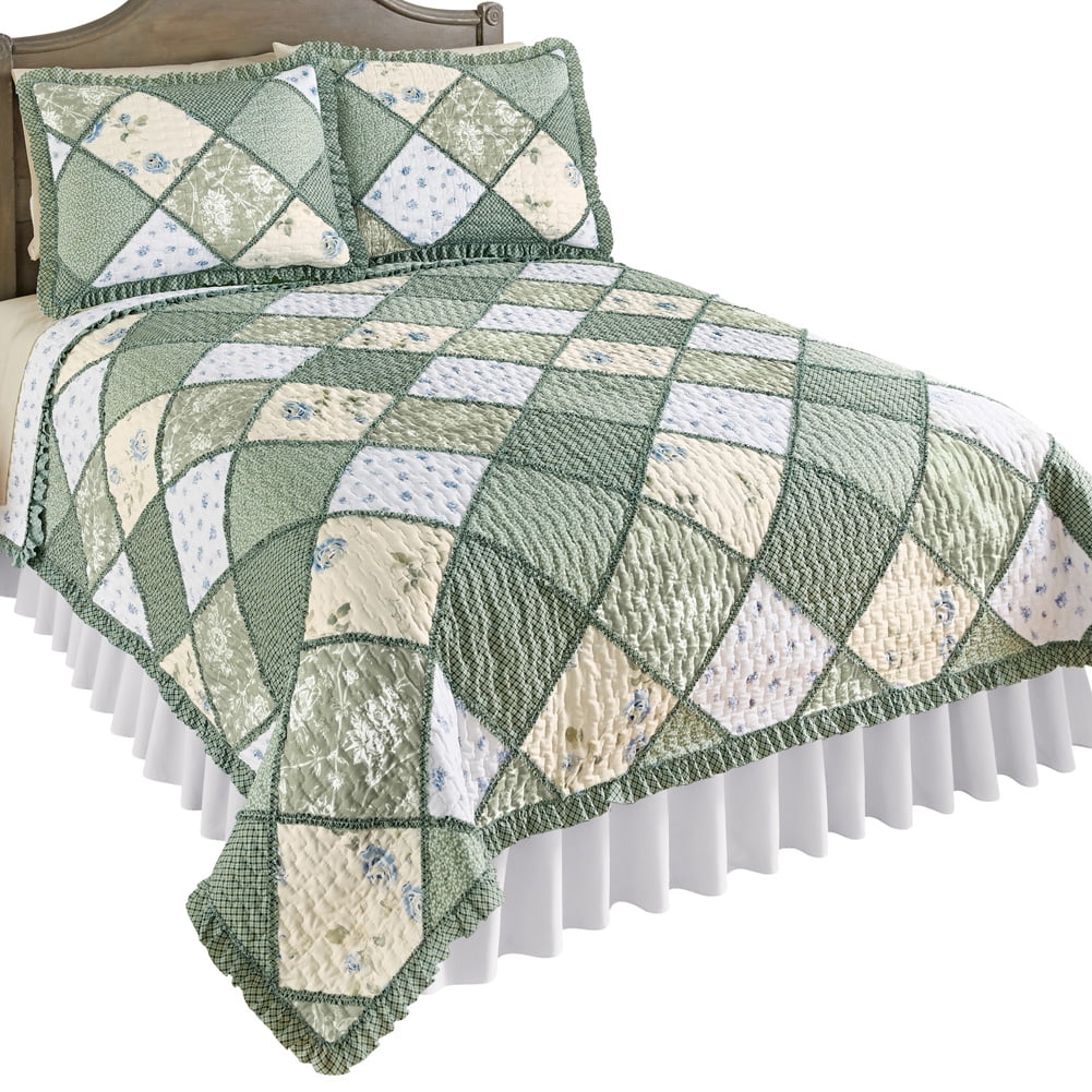 Maya Reversible Patchwork Quilt With Ruffled Edge And Light Floral