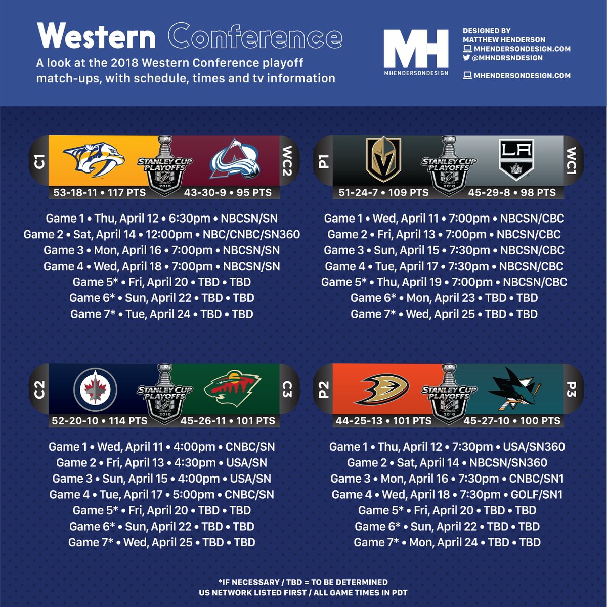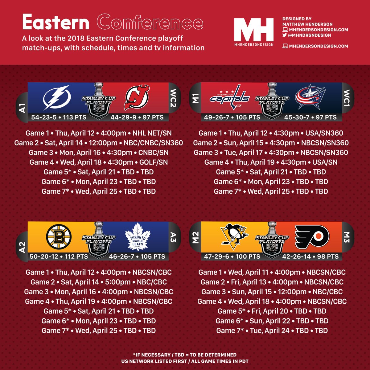 2018 Stanley Cup Nhl Playoffs First Round Matchups And Television Schedules Die By The Blade
