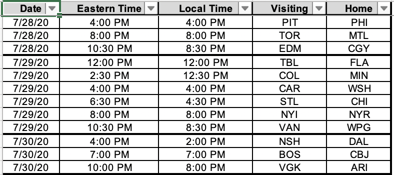 Nhl Announces Times And Dates Of Exhibition Games And Qualifying Round