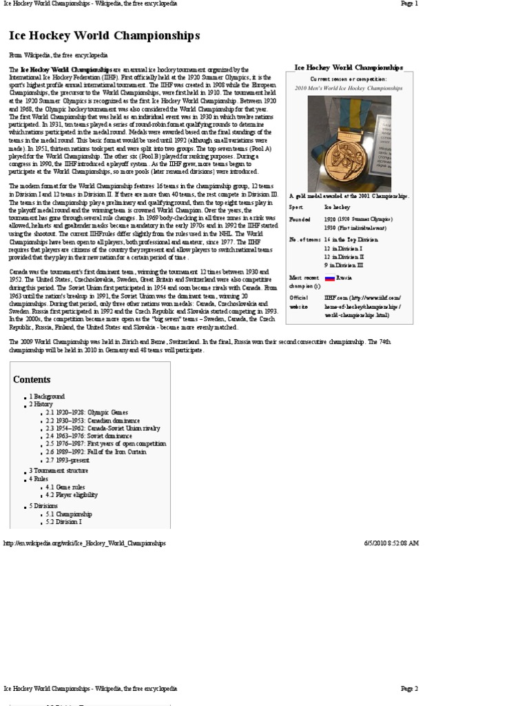 Ice Hockey World Championships Wikipedia The Free Encyclopedia
