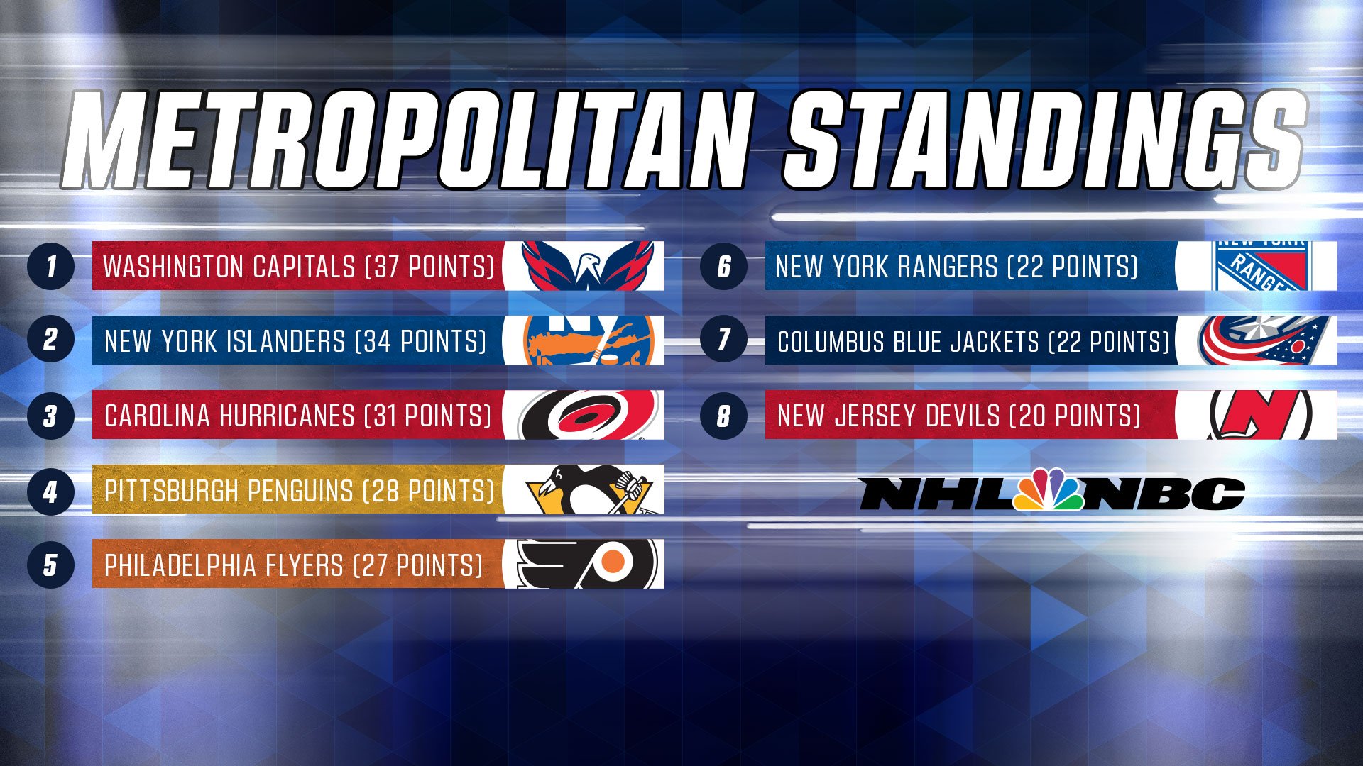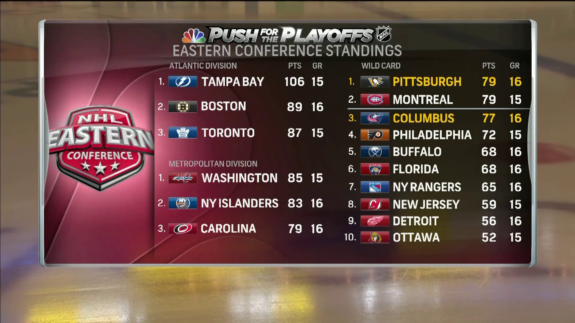 The Eastern Conference Standings With 2 Nhl On Nbc Sports