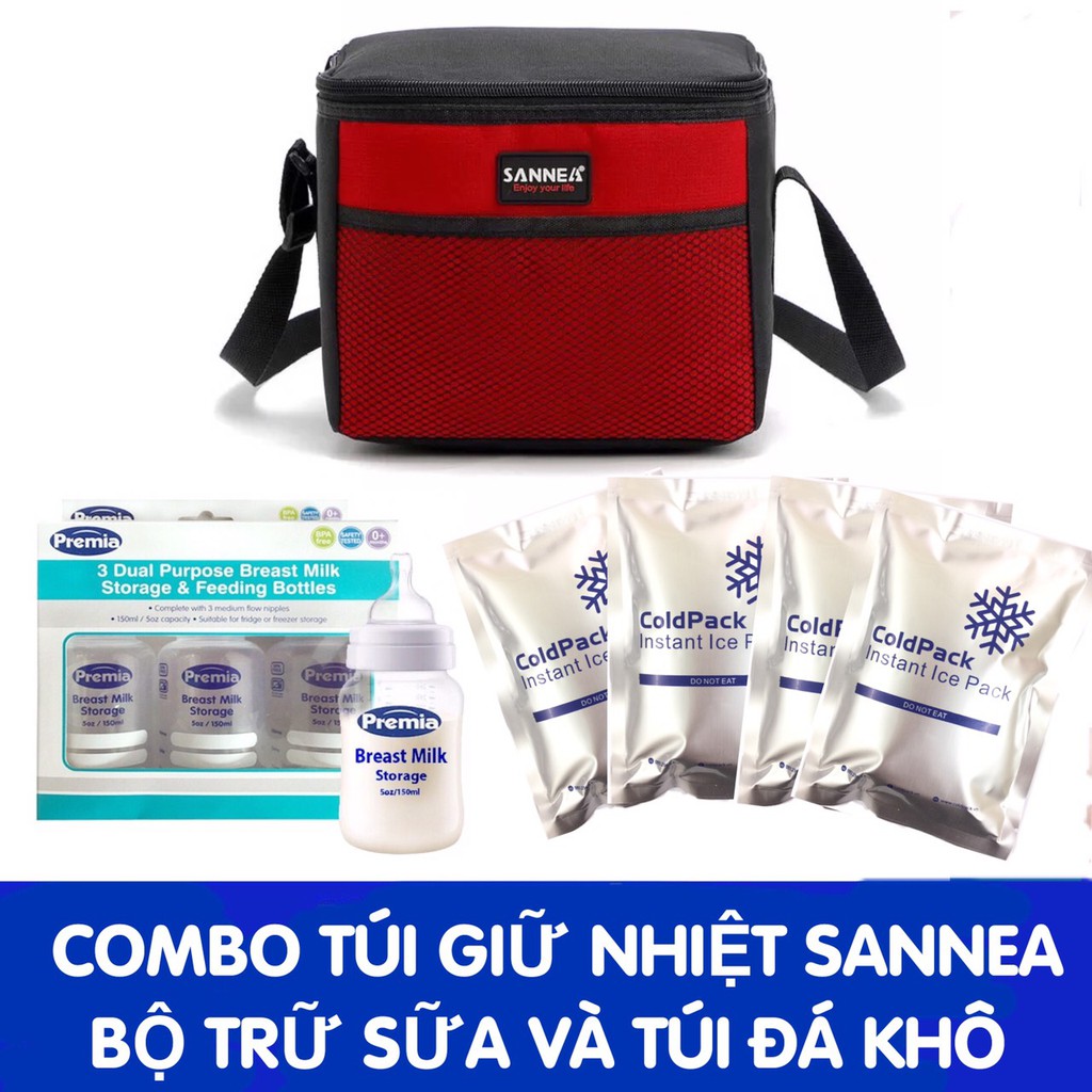 Combo Tui Giữ Nhiệt 1 Ngăn Sannea 3 Binh Trữ Sữa Premia 150ml shopee.vn
